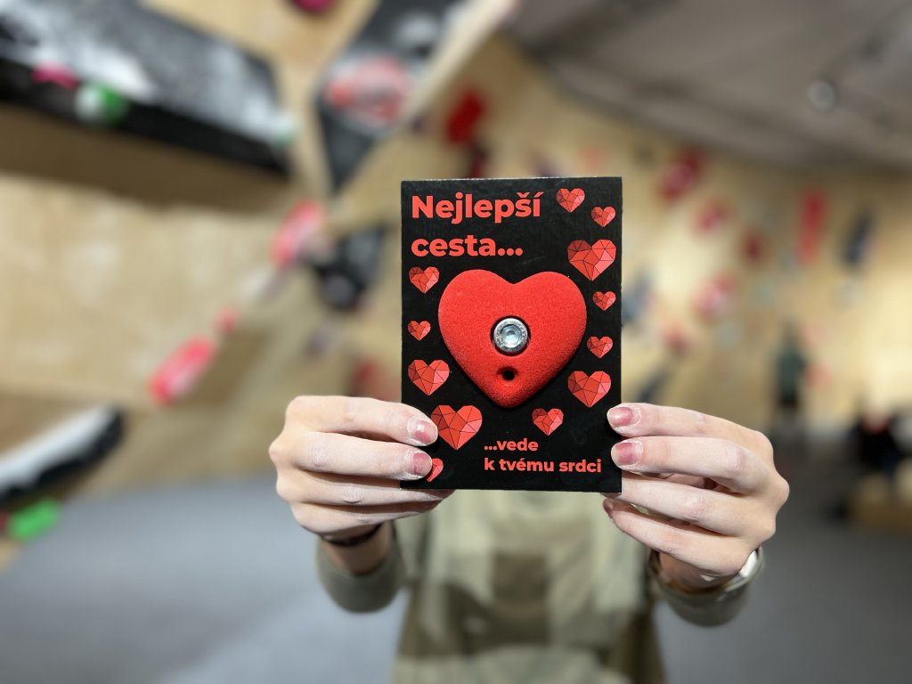- chyt srdce s valentýnskou kartičkou verze 1: Miluji tě víc než lezení.