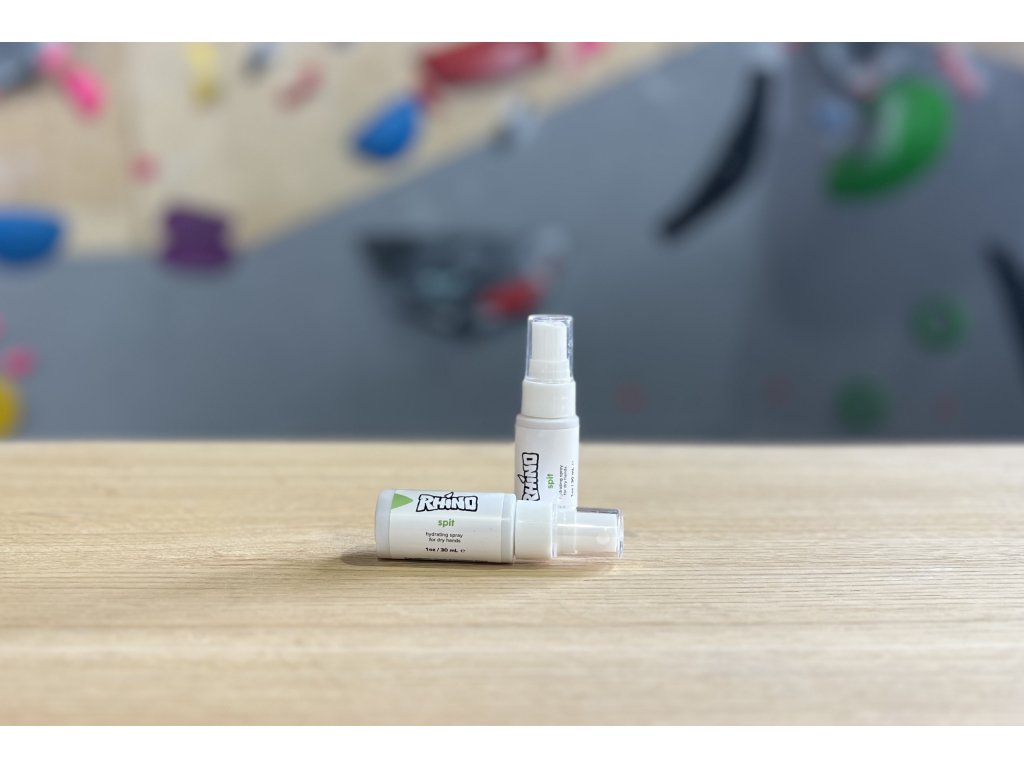 Rhino Spit je hydratační sprej určený pro lezce s příliš suchou pokožkou rukou.